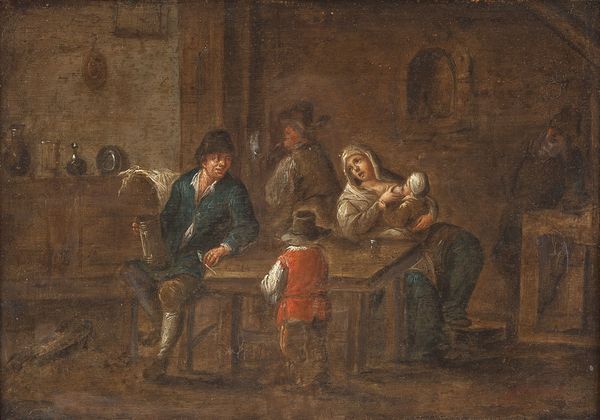 Wirtshausszene mit Landvolk und stillende Mutter