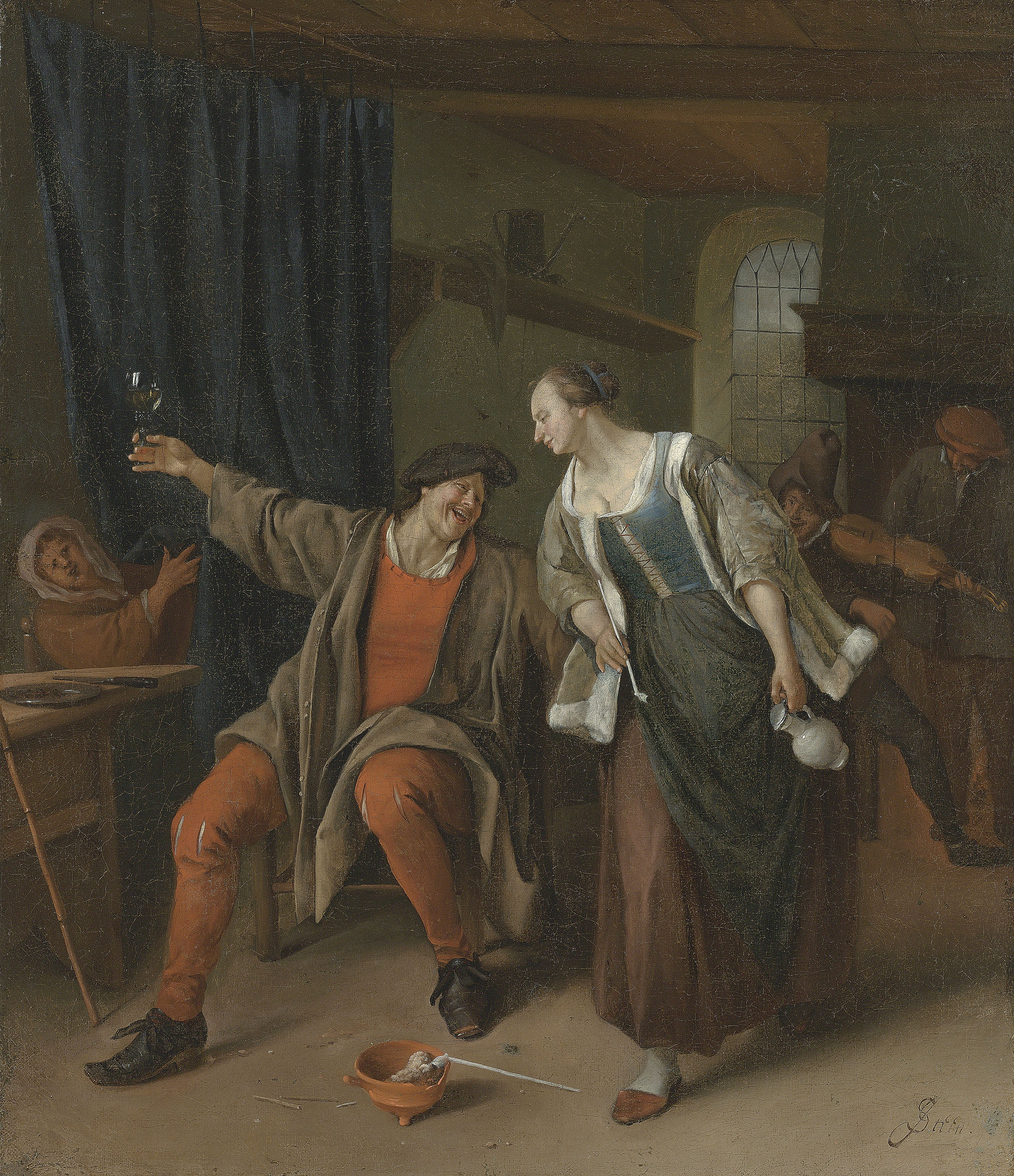 A peasant couple carousing in an inn