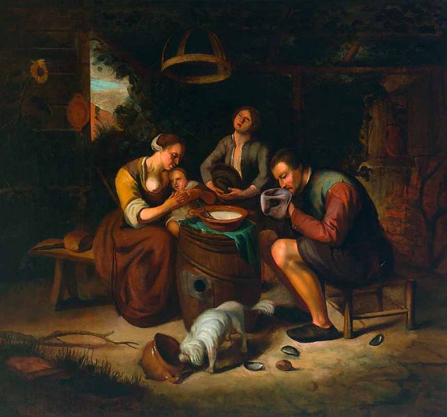 Das Tischgebet einer bäuerlichen Familie in der Stube
