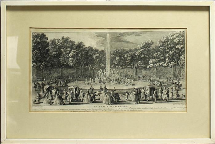 | Paar Kupferstiche mit Ansichten von Versailles: "VUE DE L'ORANGERIE DE VERSAILLES" und "LE BASSIN D'ENCELADE", so je in der Plat | |