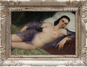 Ležící tmavovláska s fialovým krajkovým přehozem