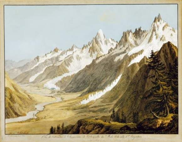 | Vue de la vallée de Chamounix, de l'Aiguille du Midi et de celle d'Argentière | |