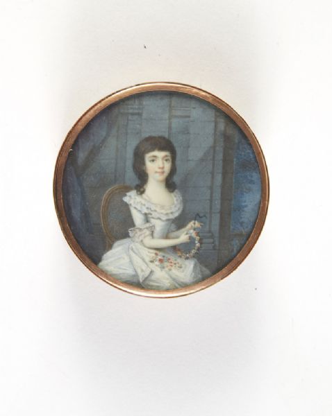 Portrait d'une jeune fille tressant une couronne
