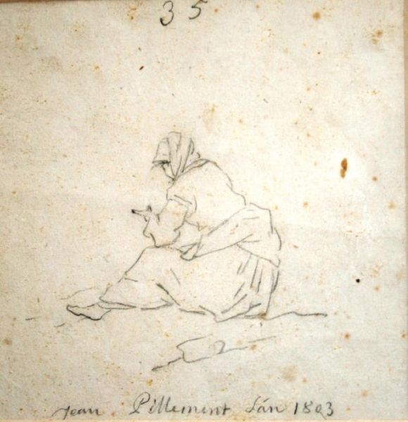 | A SEATED WOMAN; A DONKEY; A STANDING FIGURE, FROM BEHIND; STANDING FIGURE; TRAVELLER WITH A LOAD ON HIS SHOULDER; SEATED FIGURE, | |