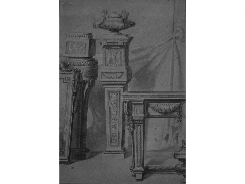 STUDY OF NEO-CLASSICAL FURNITURE, A FRAME, PEDESTALS AND URNS