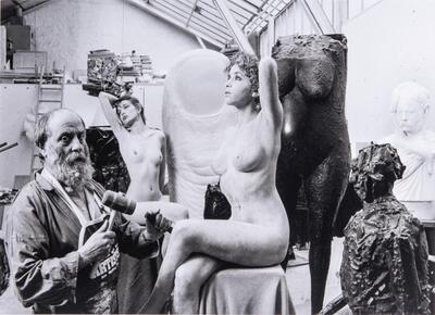 | César et son modèle dans son atelier | |