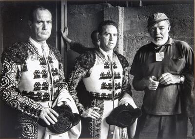 | Ernest Hemingway avec la cuadrilla d’Ordonez à Nimes, en octobre 1960 | |