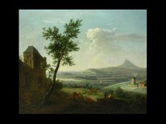 TIEFE LANDSCHAFT MIT BURG UND WINDMÜHLE