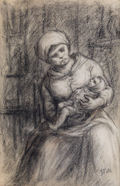 | Crayon with traces of pencil and red and white chalks on buff laid paper | |
