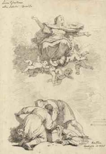 | The Assumption of the Virgin, after Luca Giordano, and two figures, after Antonio Vassilacchi, l'Aliense | |