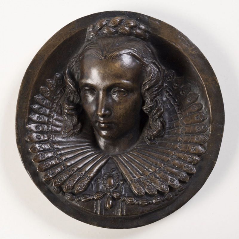 | Médaillon représentant le portrait de la comédienne Marie Dorval dans le rôle de Marie Stuart | |