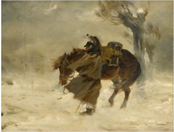 CAVALRY OFFICER AND HIS MOUNT, WINTER
