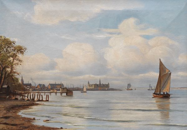 Seascape with a sailboat and Kronberg Castle