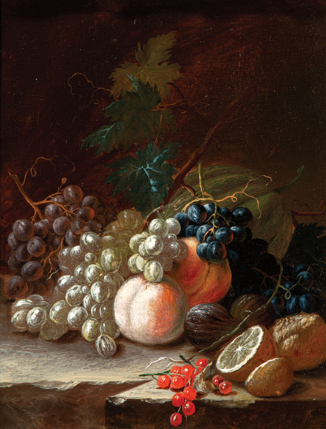 | A Pair of Still Lifes of Fruit on a Stone Ledge | |