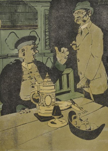 Polizist und Tourist im Gespärch am Wirtshaustisch