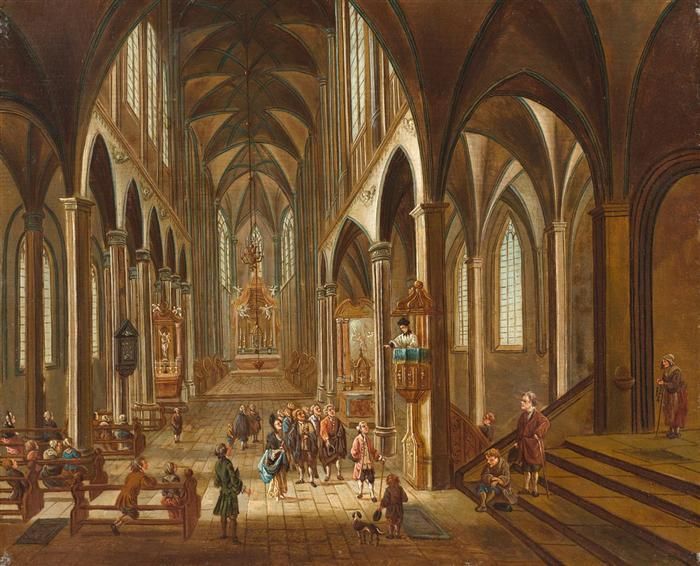 Kircheninterieur mit Figurenstaffage