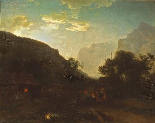A village in the mountains at evening