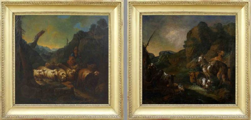 Landschaft mit Hirt und Schafherde; Landschaft mit Ziegen und Schafen.