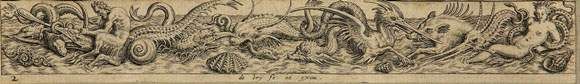 Fries mit Meerestieren und Wasserallegorien