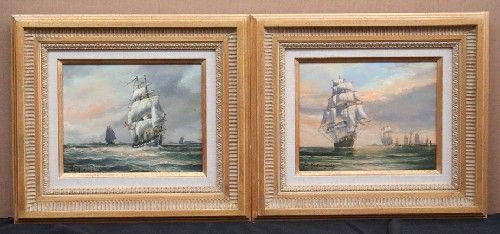 | A Pair of Paintings; Leaving Harbor and Ships off the Coast | |