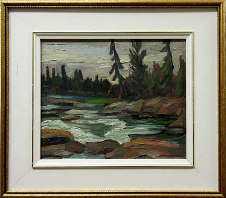 ROCKY SHORELINE AT DUSK; FALL STUDY