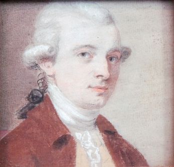 Portrait of a young man wearing brown coat and yellow waistcoat