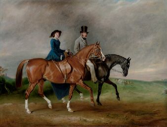 | Thomas Tertius Paget and his Wife, Geraldine McCausland, riding on Satan and Jessica in Bradgate Park, Leicestershire | |