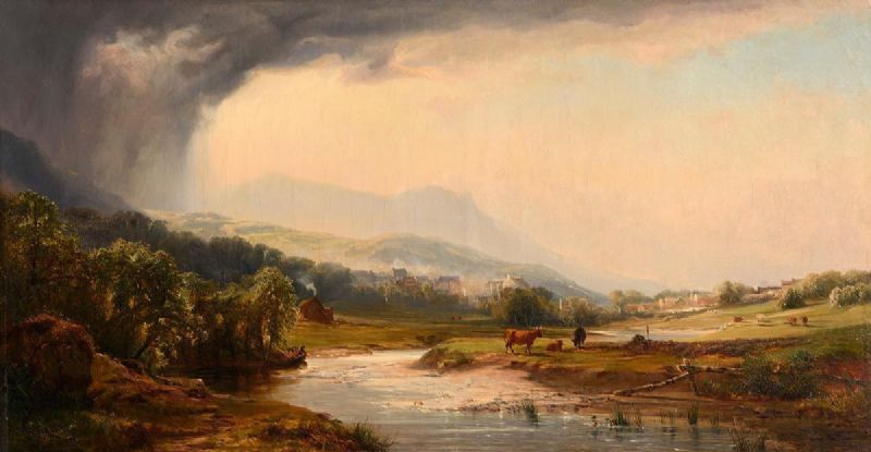 Landscape with a View towards a Town and Grazing Cattle in Foreground