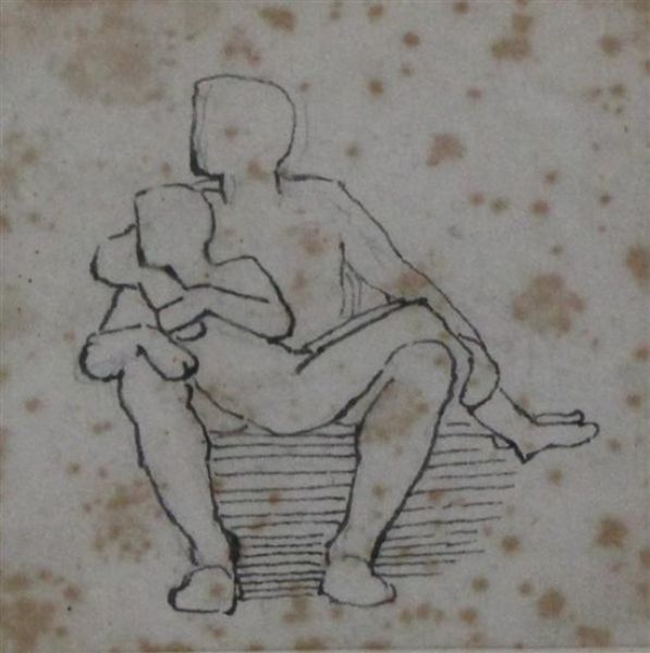 A man with a boy on his lap, Sabin Galleries label verso