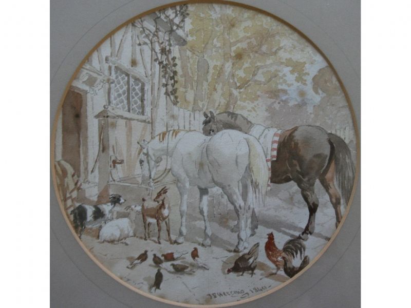 | HORSES AND OTHER ANIMALS AT A TROUGH; DUCKS WITH DUCKLINGS | |