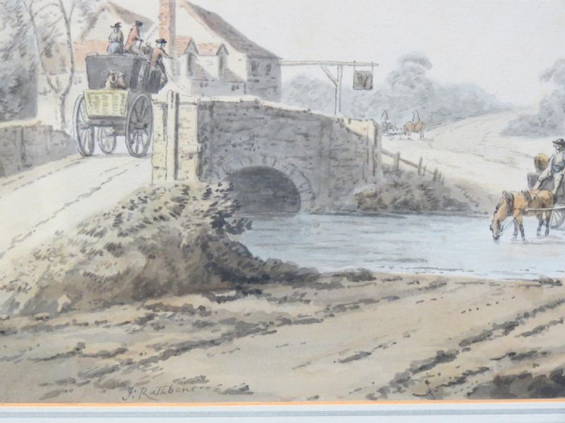 | horse and carts crossing river entitled The Welsh Harp, River Brent | |