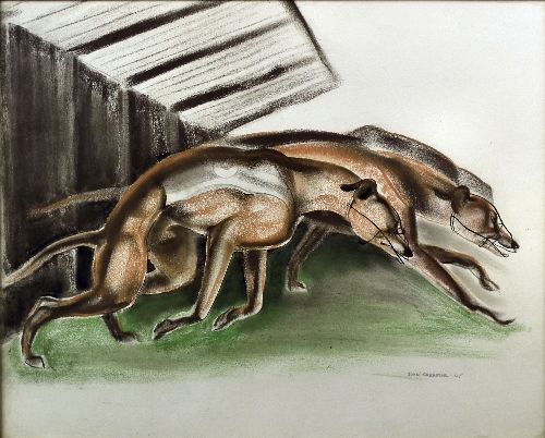 | Racing greyhounds and a greyhound pursuing a hare | |