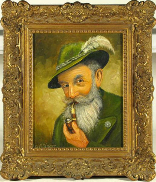 Brustbild eines Tiroler Bauern mit Tabakpreife und Hut