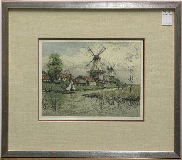 Etching coloured, framed