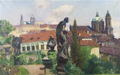 View of Prague Castle and St. Nicholas’ Church from Vrtbovská Garden