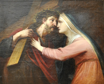 Christ carrying his cross and Mary