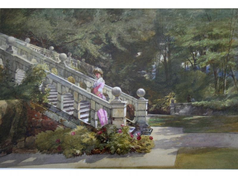 ELEGANT LADY ON GARDEN STEPS