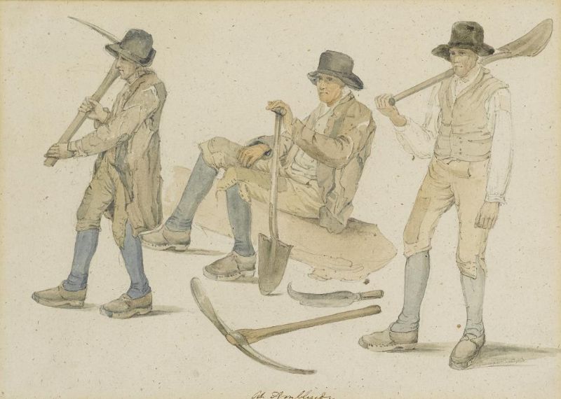 | THREE STUDIES OF A LABOURER WITH SPADE, PICKAXE OR BILL HOOK | |