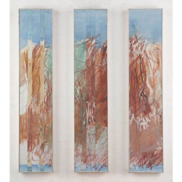 Pastel and watercolor on paper in three panels