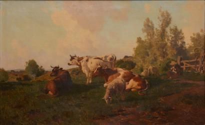 Berger gardant ses vaches et ses moutons