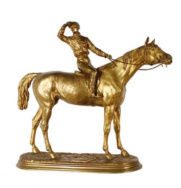 A gilt bronze model of a racehorse with jockey up 'Cheval de course et son jockey