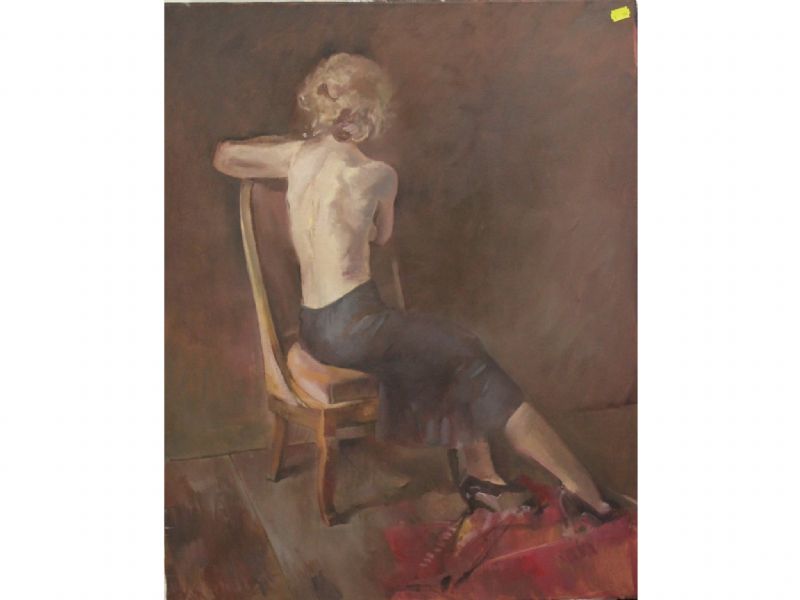 portrait study of a seated semi nude lady