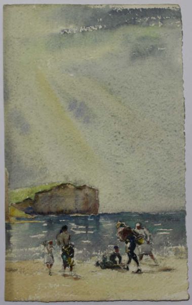 Pêche à pied et jeux de plage, falaise en perspective