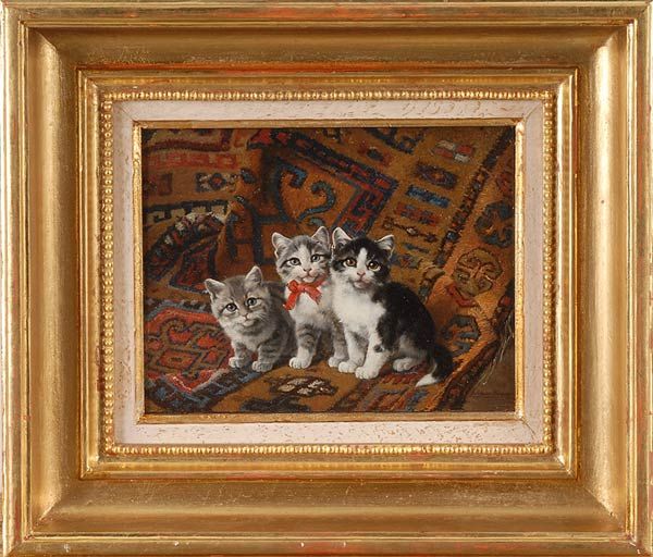 3 Kätzchen auf Orientteppich.
