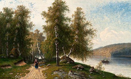 BIRCHES BY THE LAKE AT SUMMER TIME