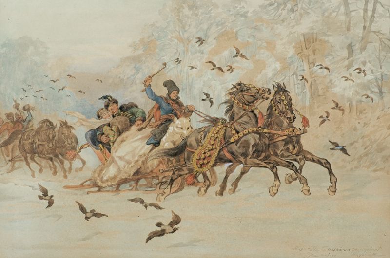Kmicic and Oleńka in sleigh