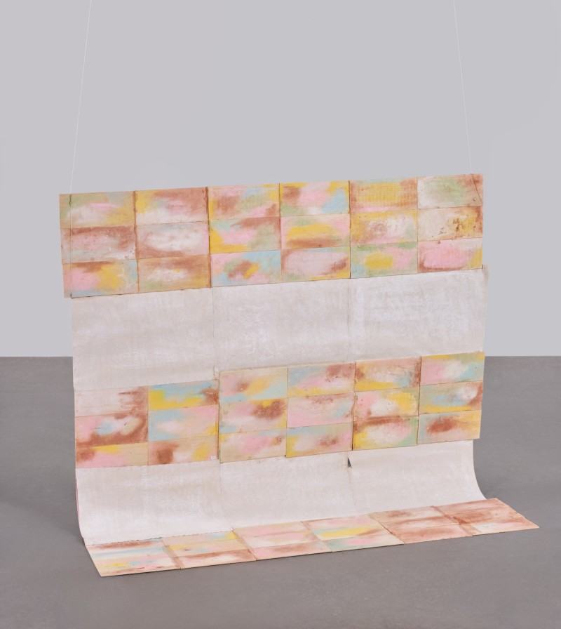 | Wood balsa wood, eyeshadow, sugar paper, chalk and string | |