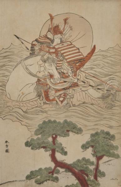| Oban tate-e, Taira no atsumori menant son cheval dans la mer. | |