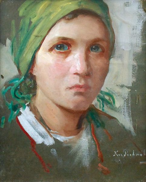 Głowa wieśniaczki w zielonej chuście