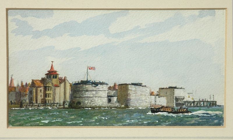 The Round Tower and Wyllie's House at entrance to Portsmouth Harbour